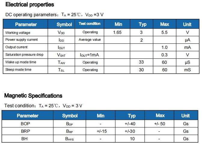 In terms of circuit design, HS473 provides an embedded controlled clock mechanism to provide a clock source for the Hall device and analog signal processing circuit. At the same time, this controlled clock mechanism can send a control signal to make the circuit with high current consumption periodically enter the "sleep" mode; through this mechanism, the chip is periodically "woken up" and detects the strength of the magnetic field passing through the Hall device according to the predetermined magnetic field strength threshold. If the magnetic flux density is higher than the "operating point" threshold or lower than the "release point" threshold, the open-drain output transistor is driven and latched into the corresponding state. During the "sleep" cycle, the output transistor is locked in the previous state. In battery-powered applications, this design provides the best support for extending the working life.